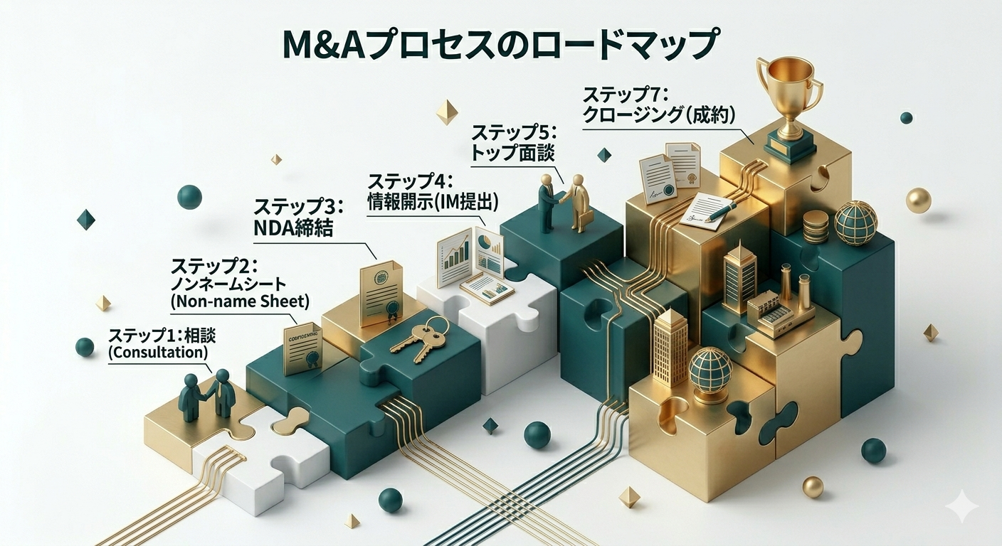 M&Aは複数のステップを経て成約に至るため、一般的に数カ月から1年以上かかることがあります。また、M&Aアドバイザーや仲介業者への手数料も発生します。中小企業庁「中小M&Aガイドライン(第3版)」では、信頼できる専門家の活用が推奨されています。
