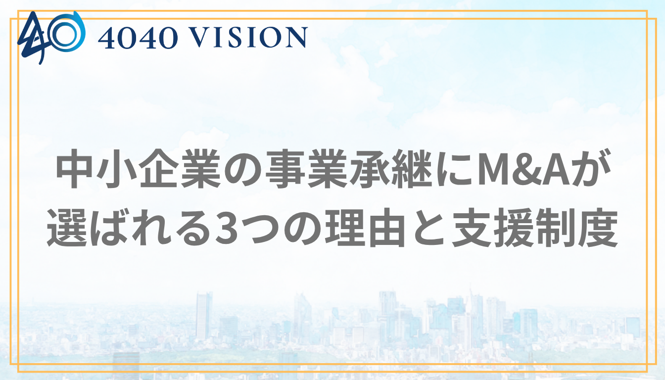 中小企業庁は、後継者問題の解決策として第三者承継(M&A)を積極的に推進しており、「中小M&Aガイドライン(第3版)」を整備するとともに、全国の事業承継・引継ぎ支援センターを通じた支援体制を充実させています。